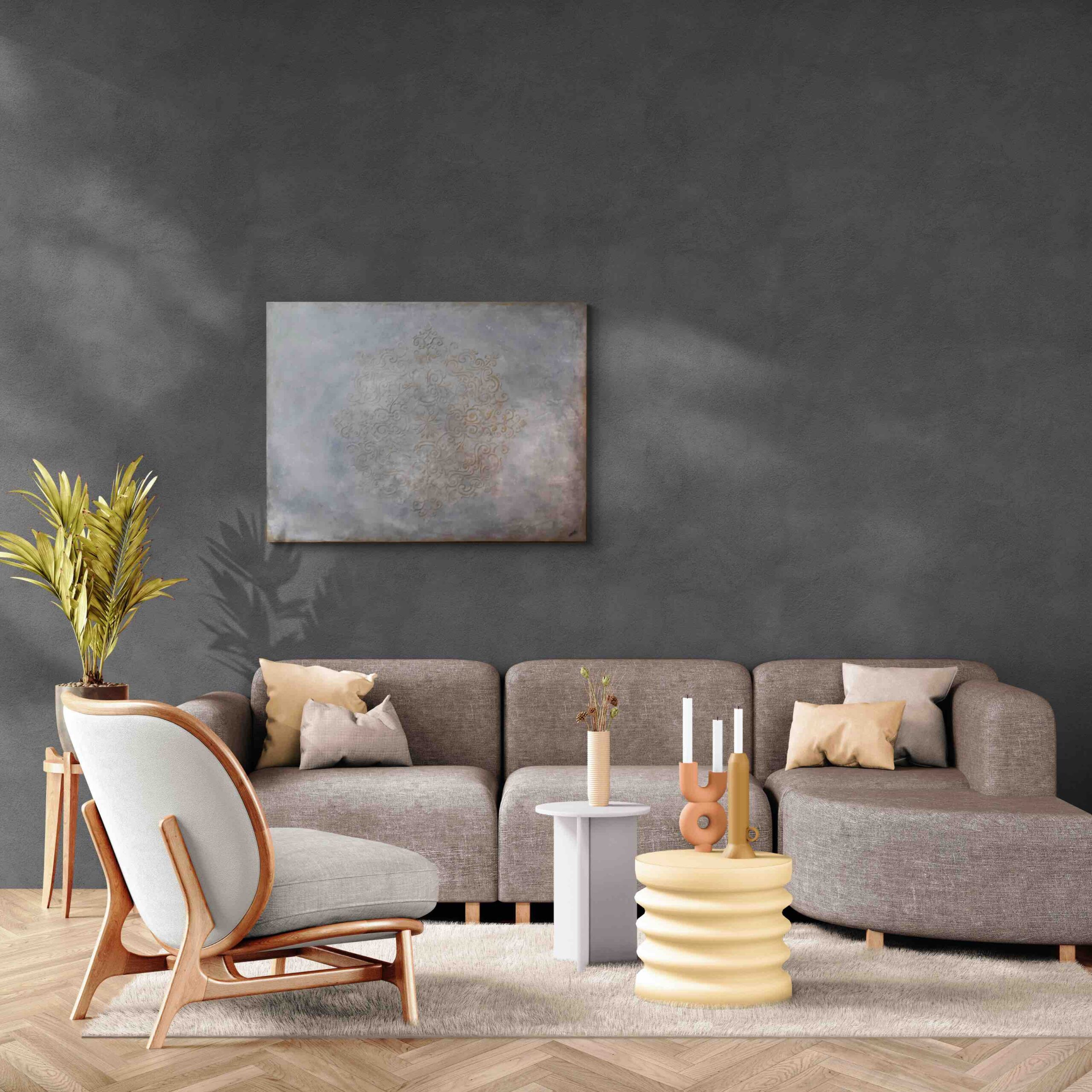 Toile peinte à la main à l’acrylique et texture 3D.