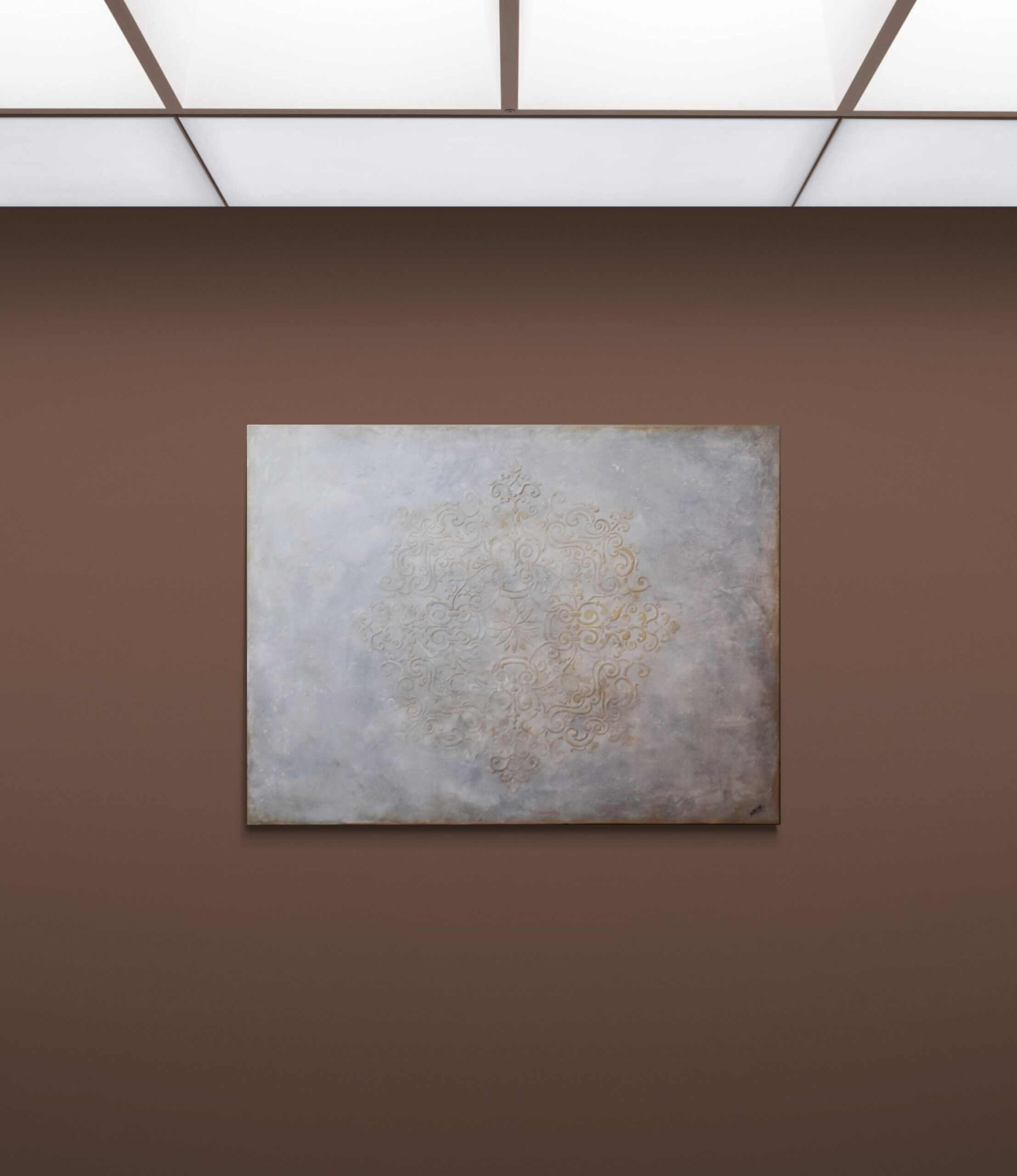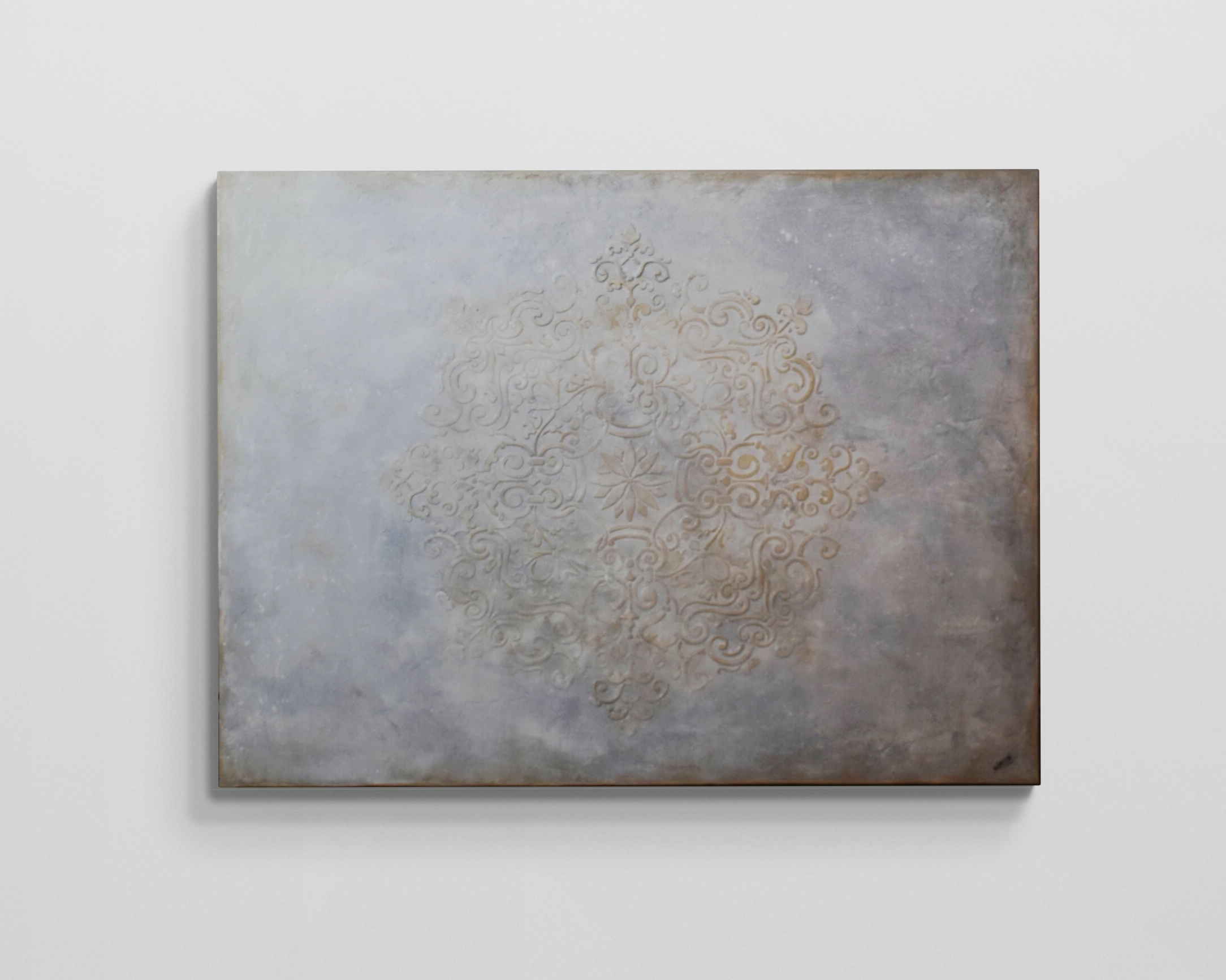 Un modèle de Mandala a été peint en relief à l’aide d’un pochoir.
